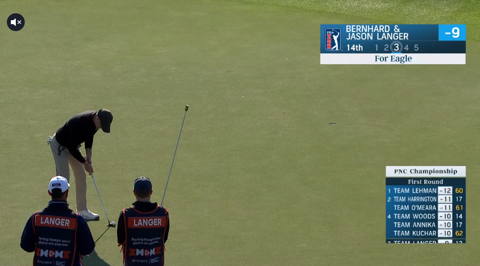 - 우즈 부자는 1라운드에서 보기 없이 버디 13개를 기록하였다.